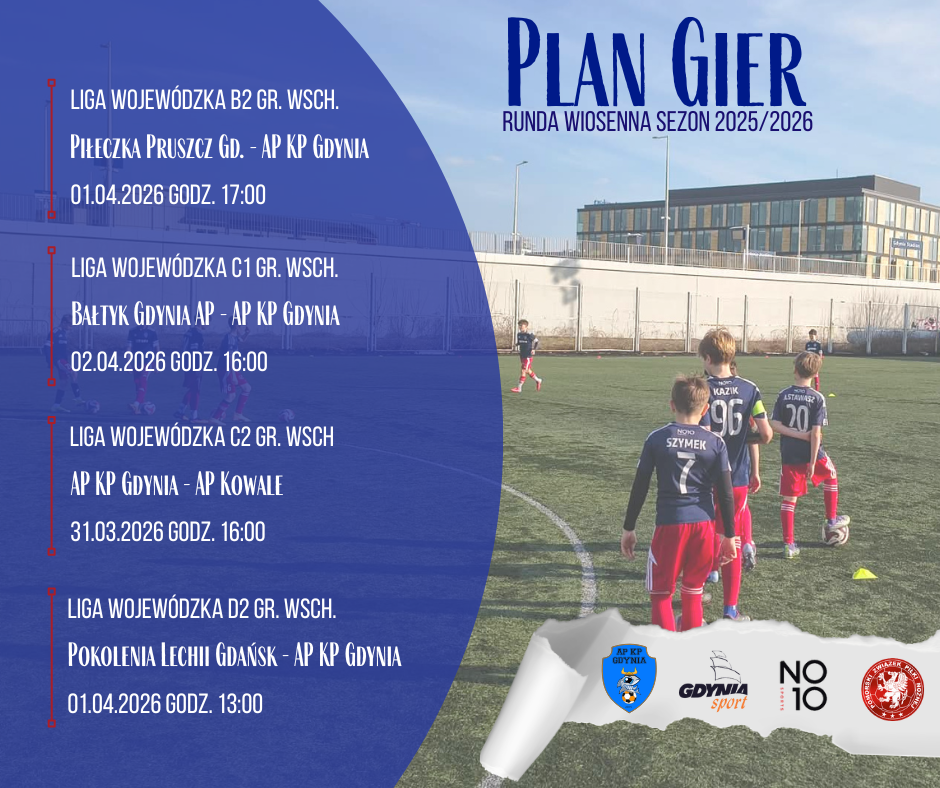 Przed nami cztery mecze które rozegramy od wtorku do czwartku. Najpierw rocznik 2012 we wtorek zmierzy się przy Olimpijskiej z AP Kowale. W środę jako pierwszy wystąpi rocznik 2014 który zagra w Gdańsku z Pokoleniami Lechii, następnie juniorzy młodsi w Pruszczu Gdańskim zagrają z Piłeczką.