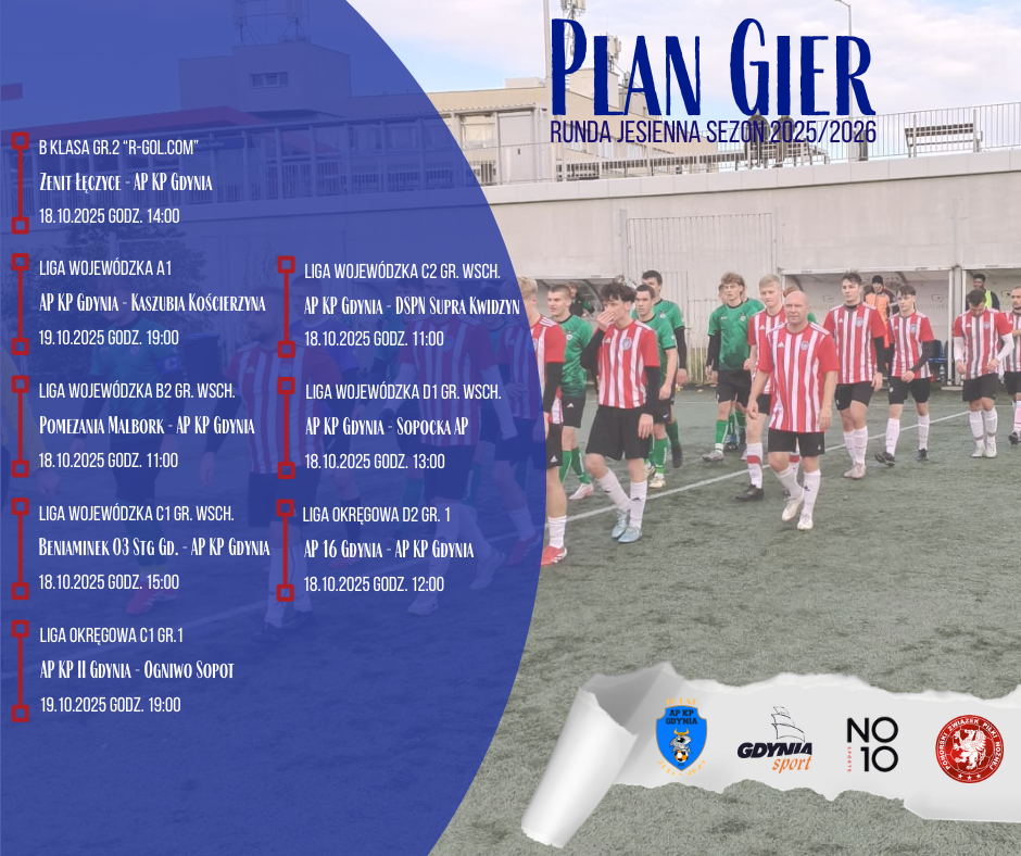 O godz. 12:00 na boisku przy Zamenhofa zobaczymy hitowy mecz w lidze okręgowej D2, naszym przeciwnikiem będzie AP 16 Gdynia. Zaraz po spotkaniu rocznika 2012 na klatkę wybiegną ich o rok młodsi koledzy którzy rozegrają mecz z Sopocką AP.