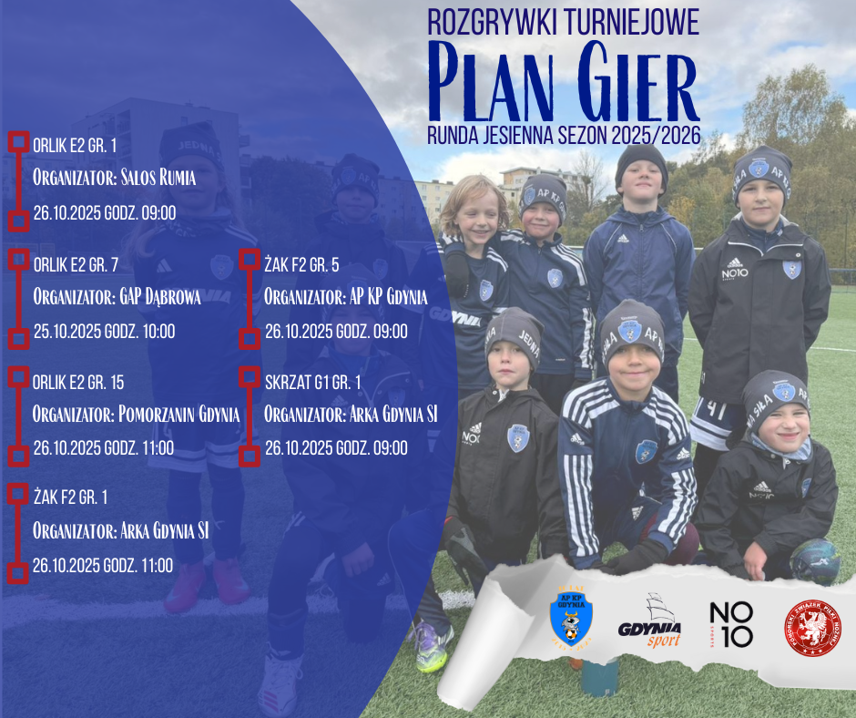 W ten weekend kończymy serię turniejów PZPN. Rocznik 2016 zagra w sobotę na Dąbrowej, w niedzielę w Gdyni przy Olimpijskiej i w Rumi. Rocznik 2018 w niedzielę zagra na boisku GCS przy ul. Olimpijskiej i na Witominie przy ul. Nauczycielskiej. Najmłodsi, czyli rocznik 2019 zagrają również w niedzielę i też na Witominie, przed swoimi starszymi kolegami.