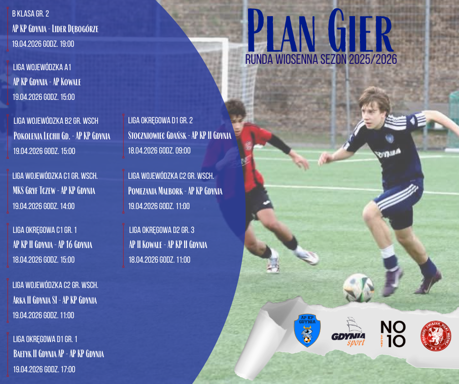 Weekend zacznie druga drużyna rocznika 2013, w Gdańsku zmierzą się z Stoczniowcem, następnie w Kowalach z AP II zagra drugi zespół rocznika 2014, natomiast o 15:00 przy Olimpijskiej zagra dwójka trampkarzy starszych, spotkamy się z AP 16 Gdynia.